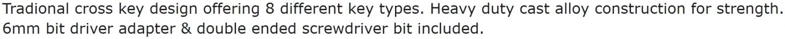 | 1398151 מפתח אוניברסלי לארונות שירות - CK TOOLS 495015 | CK TOOLS | מפתח אוניברסלי לארונות שירות - CK TOOLS 495015 ♦ עבור פתיחת ארונות חשמל, גז, מים וכדומה♦ פלדת CAS... כלי עבודה ידניים » מפתחות ובוקסות | לא ניתן להזמין - אזל המלאי |