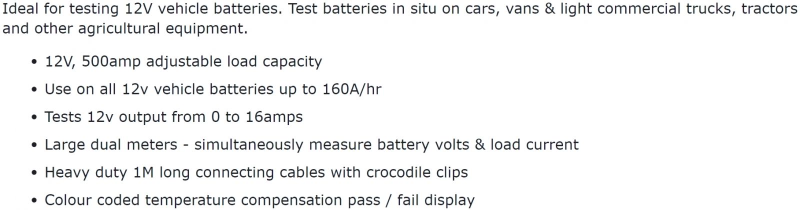 | 82470PC בודק מצברים LEAD ACID מקצועי - CLARKE CBT500 | CLARKE | בודק מצברים LEAD ACID מקצועי - CLARKE CBT500 ♦ מתאים לבדיקת מצברים 12V בקיבולת של עד 160 אמפר לשעה&diam... סוללות, מצברים ומטענים » מכשירי בדיקה לסוללות | לא ניתן להזמין - אזל המלאי |