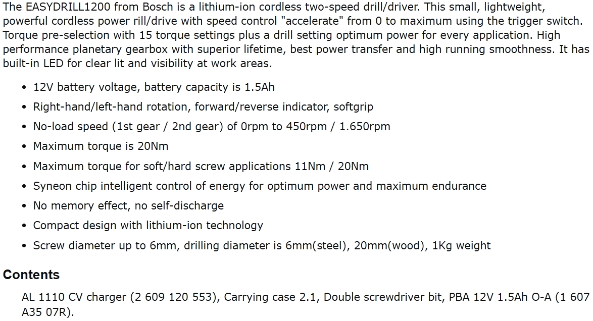 | 7634672 מברגה / מקדחה מקצועית נטענת BOSCH EASYDRILL 1200 - 12V | BOSCH | מברגה / מקדחה מקצועית נטענת BOSCH EASYDRILL 1200 - 12V ♦ שתי מהירויות סיבוב : 0-1650 / 0-450 סל''ד... כלי עבודה נטענים / חשמליים » מברגות / מקדחות / פטישונים | כמות |
