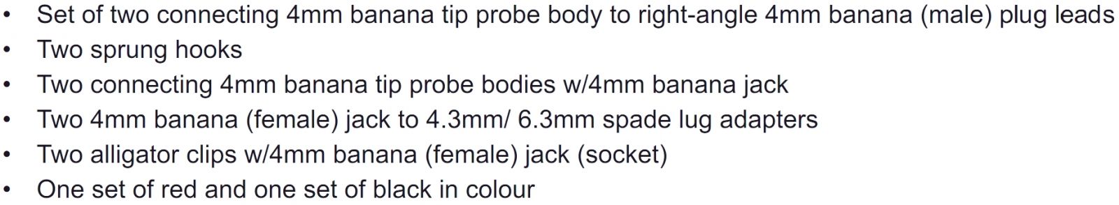 | 1449272 קיט כבלי בדיקה למעבדות אלקטרוניקה - TENMA 76-104 | TENMA | קיט כבלי בדיקה למעבדות אלקטרוניקה - TENMA 76-104 ♦ שני כבלים 4MM PROBE TIP ~ 4MM R/A PLUG♦ שני מת... כבלים ואביזרים לכבלים » כבלים למעבדות אלקטרוניקה | כמות |