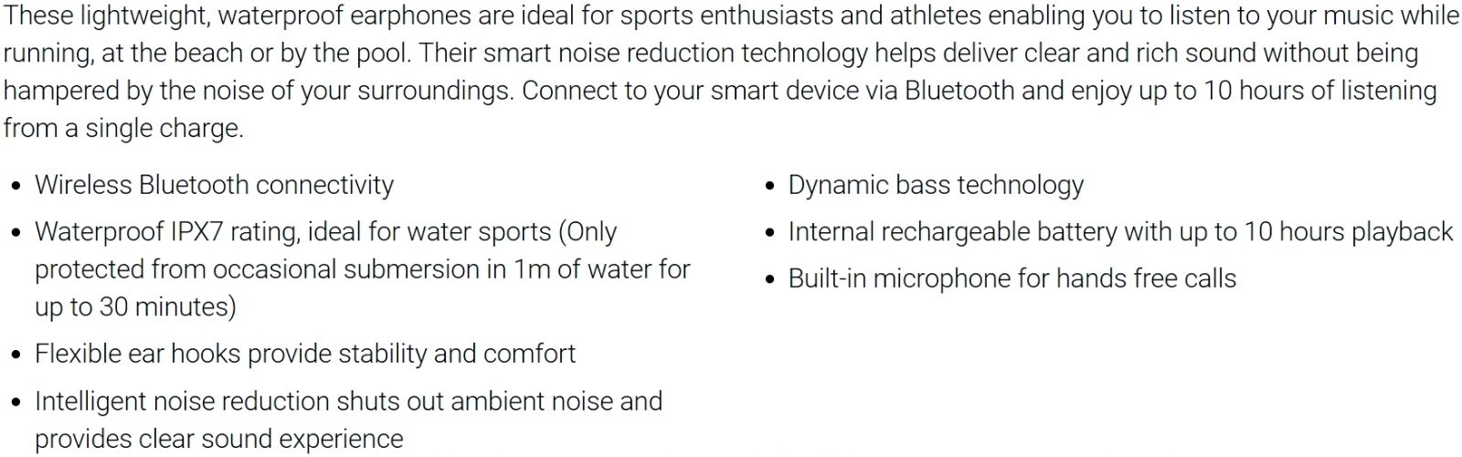 AV:LINK WATERPROOF WIRELESS IN EAR SPORTS HEADPHONES - SBH03 SERIES AV:LINK WATERPROOF WIRELESS IN EAR SPORTS HEADPHONES - SBH03 SERIES