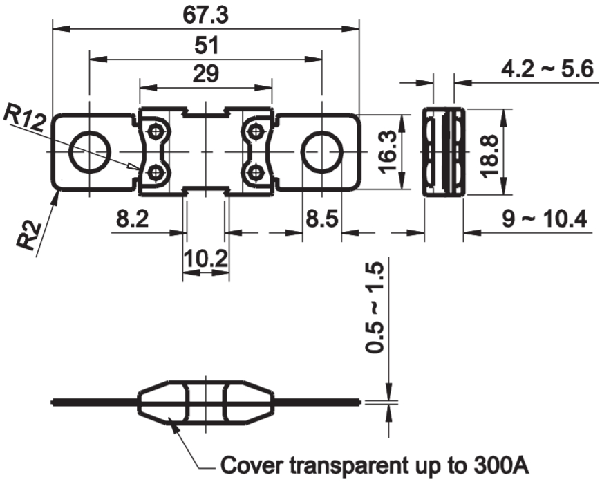 פיוז למצבר - BF2 - SLOW BLOW - 150A 32V
