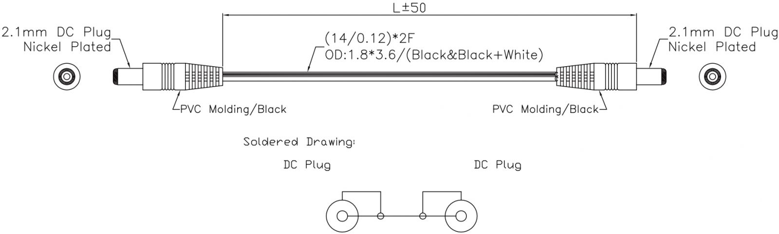 כבל למתח DC - זכר / זכר - מחבר 2.1MM - אורך 5 מטר