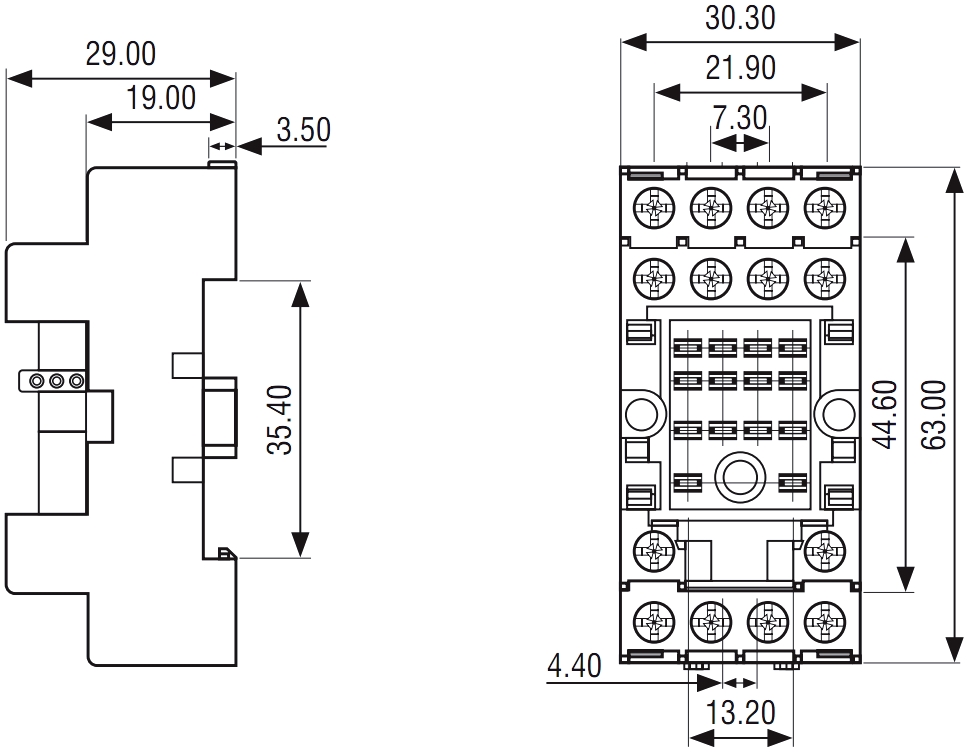 תושבת ממסר לפס דין - HYE - 4C/O 10A