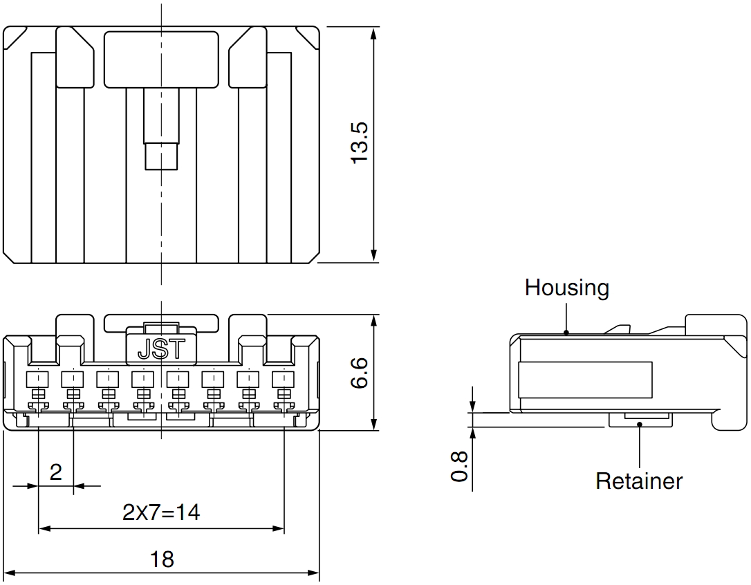 ♦ סוג מחבר : SINGLE ROW RECEPTACLE HOUSING