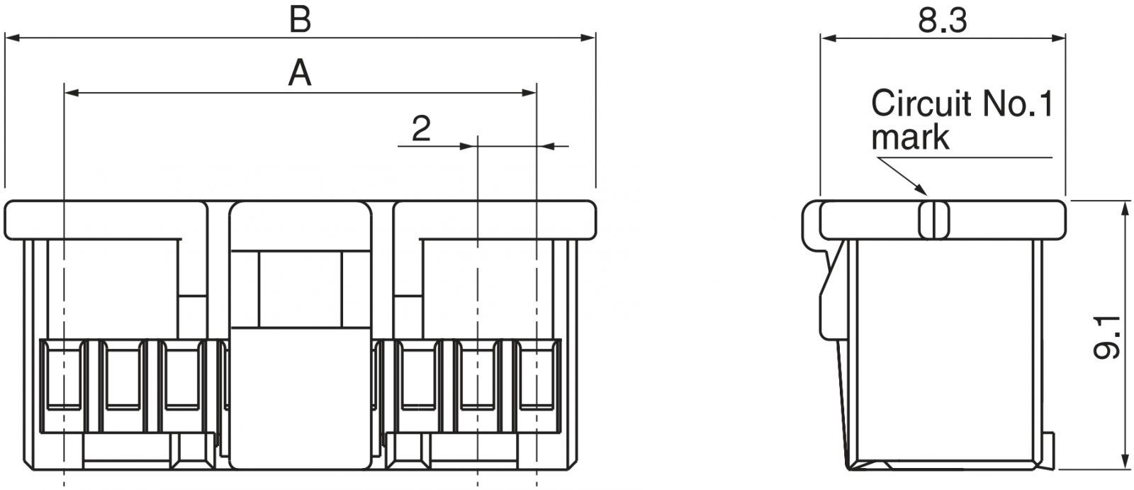 ♦ מרווח בין מגעים : 2.0MM
