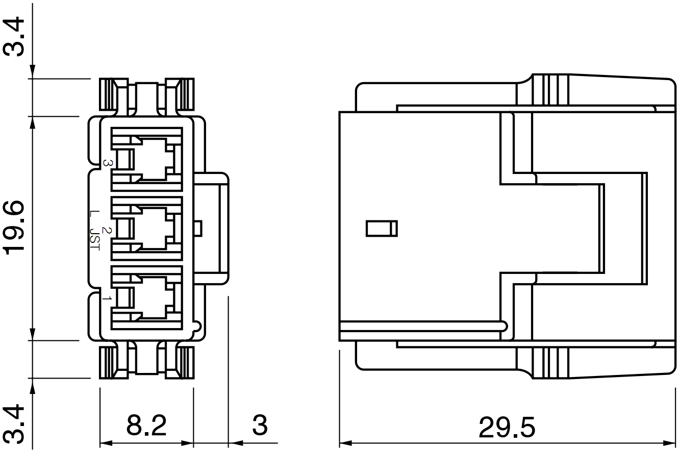 מחבר JST ללחיצה לכבל - סדרת VL - זכר 3 מגעים