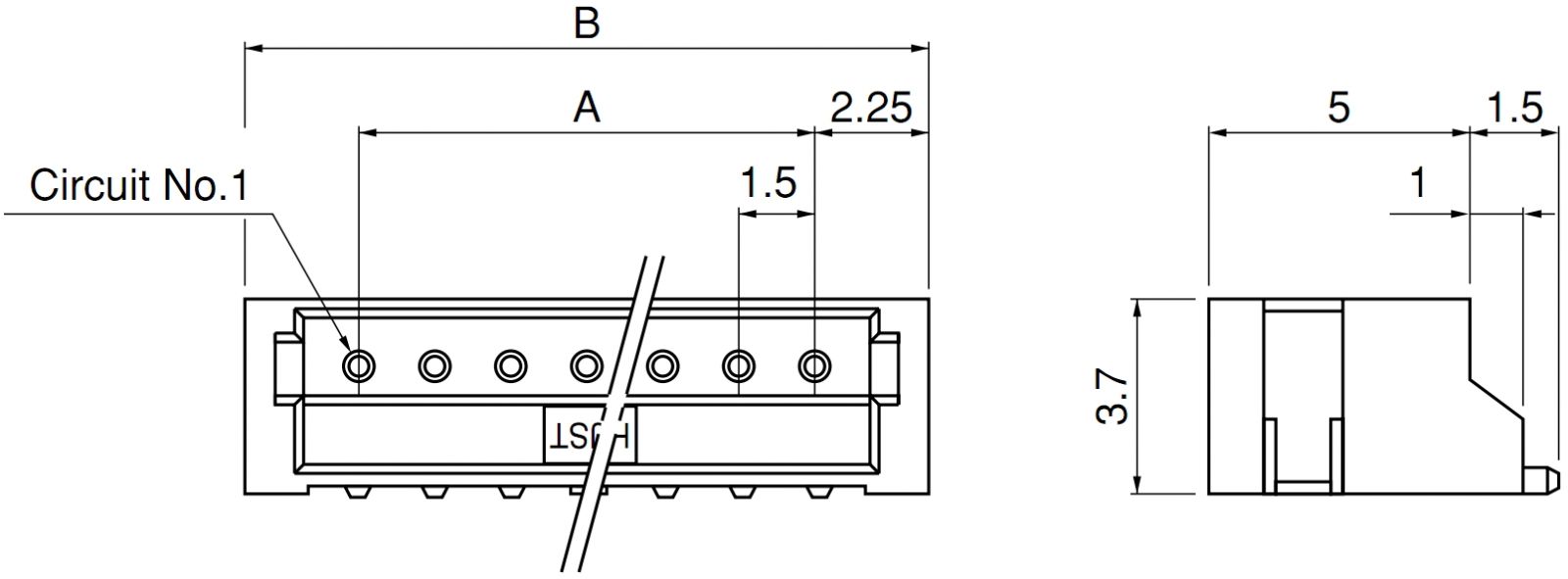 מחבר JST להלחמה למעגל מודפס - סדרת ZH - זכר 7 מגעים
