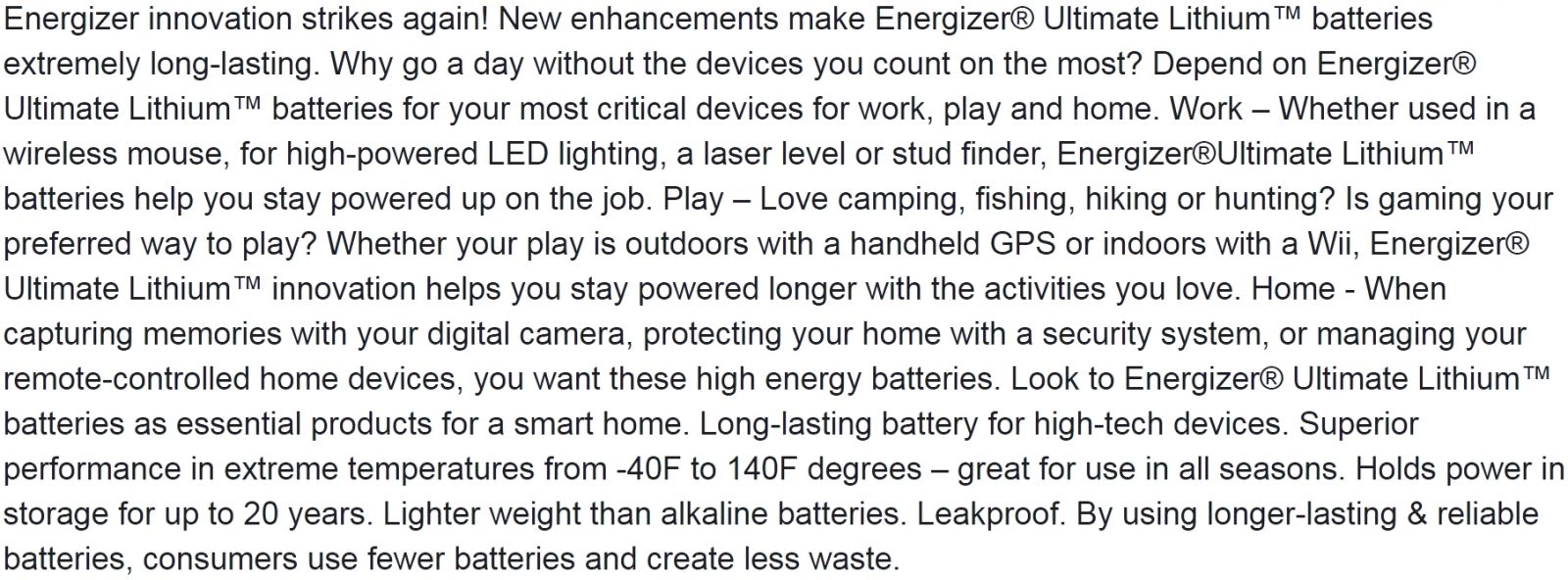 | 2584941 רביעיית סוללות ליתיום - ENERGIZER ULTIMATE LITHIUM - AAA 1.5V | ENERGIZER | רביעיית סוללות ליתיום - ENERGIZER ULTIMATE LITHIUM - AAA 1.5V ♦ מסדרת ULTIMATE LITHIUM של חברת... סוללות, מצברים ומטענים » סוללות לא נטענות | כמות | |