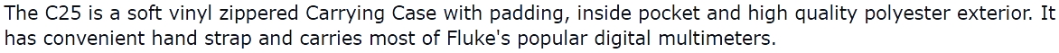 | 020424 נרתיק אחסון לרב מודד פלוק - FLUKE C25 | FLUKE | נרתיק אחסון לרב מודד פלוק - FLUKE C25 ♦ עשוי מבד פוליאסטר חזק ועמיד♦ מתאים למכשירי מדיד... ציוד בדיקה ומכשירי מדידה » רבי מודדים וצבתות זרם | כמות |