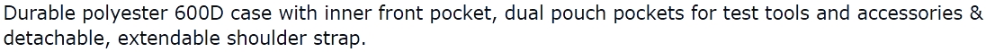 | 9902771 נרתיק אחסון לרב מודד פלוק - FLUKE C280 | FLUKE | נרתיק אחסון לרב מודד פלוק - FLUKE C280 ♦ עשוי מבד פוליאסטר חזק ועמיד♦ מתאים למכשירי מדי... ציוד בדיקה ומכשירי מדידה » רבי מודדים וצבתות זרם | כמות |