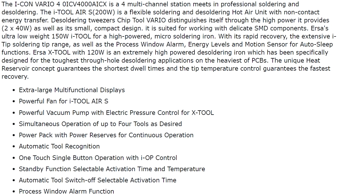 | 1022432 תחנת הלחמה דיגיטלית משולבת אוויר חם - ERSA I-CON VARIO 4 | ERSA | תחנת הלחמה דיגיטלית משולבת אוויר חם - ERSA I-CON VARIO 4 ♦ הספק תחנת ההלחמה : 500W♦ אפשרות ע... מלחמים ותחנות הלחמה » מלחמים ותחנות הלחמה | לא ניתן להזמין - אזל המלאי |