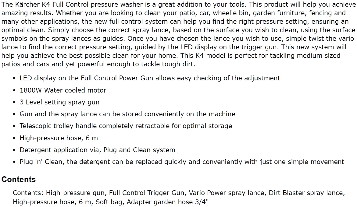 | 9783013 מכונת שטיפה בלחץ - KARCHER K4 FULL CONTROL | KARCHER | מכונת שטיפה בלחץ - KARCHER K4 FULL CONTROL ♦ מנוע עוצמתי בהספק של 1800 וואט♦ לחץ עבודה מ... כלי עבודה נטענים / חשמליים » מכונות שטיפה בלחץ | לא ניתן להזמין - אזל המלאי |