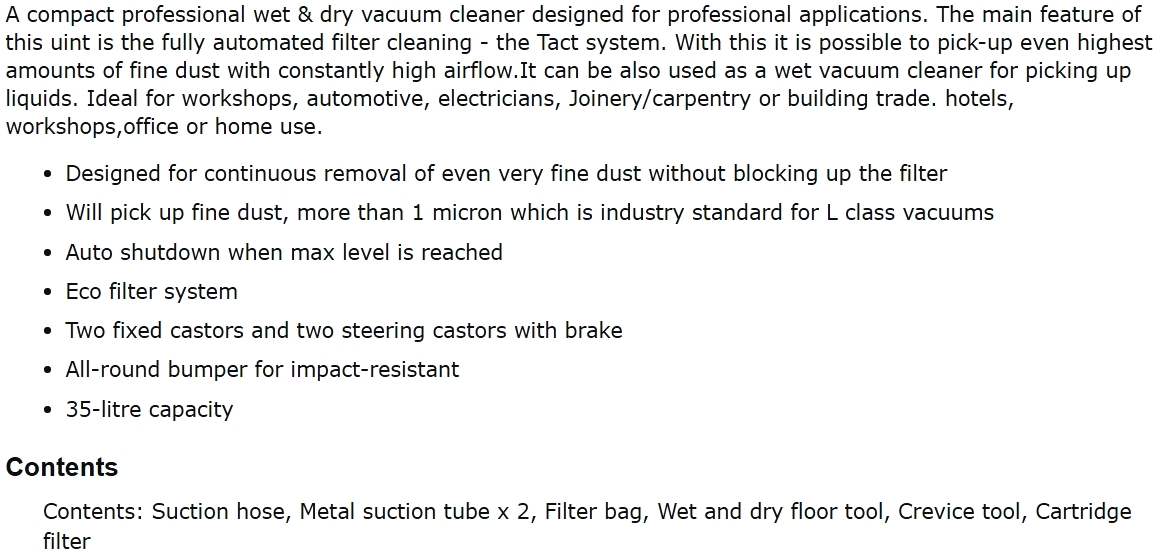 | 99061IS שואב אבק תעשייתי - רטוב / יבש - KARCHER NT 35/1 TACT | KARCHER | שואב אבק תעשייתי - רטוב / יבש - KARCHER NT 35/1 TACT ♦ מנוע עוצמתי בהספק של 1380 וואט&dia... כלי עבודה נטענים / חשמליים » שואבי אבק ומכונות טיאוט | לא ניתן להזמין - אזל המלאי |