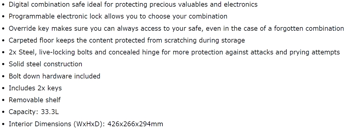 | 29890RS כספת דיגיטלית מקצועית - 33.3 ליטר - X125ML | MASTER LOCK | כספת דיגיטלית מקצועית - 33.3 ליטר - X125ML ♦ מבנה מפלדה מוצקה חזקה במיוחד♦ ריצפה מרופדת להגנה נגד... פתרונות אבטחה » מנעולים וכספות | כמות |
