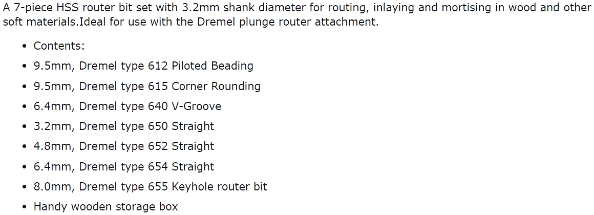 | 2137382 סט 7 כרסמים לרוטר ידני דרמל - DREMEL 660 | DREMEL | סט 7 כרסמים לרוטר ידני דרמל - DREMEL 660 ♦ סוג כרסמים : HSS 3.2MM SHANK♦ מסופק בקופסת אחסון ייעוד... כלי עבודה נטענים / חשמליים » משחזות ציר ומולטיטולס | לא ניתן להזמין - אזל המלאי |
