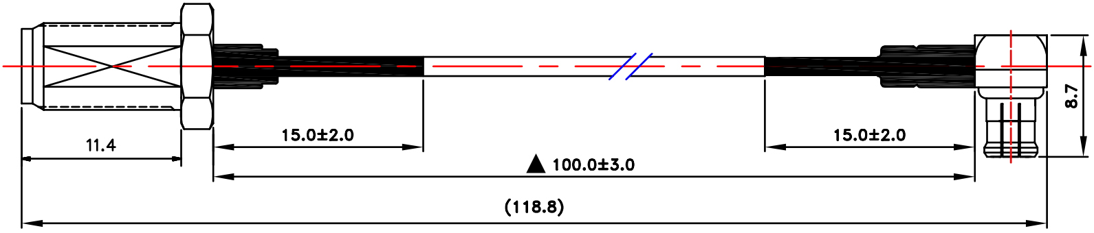 כבל קואקסיאלי שחור - SMA (F-B/H) ~ MCX (M-R/A) - 100MM