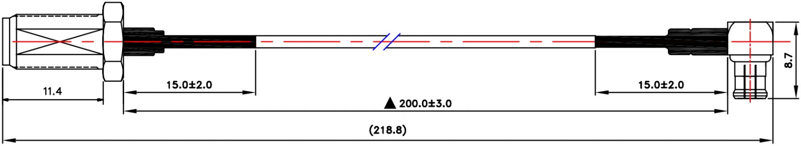 כבל קואקסיאלי שחור - RP-SMA (F-B/H) ~ MCX (M-R/A) - 200MM