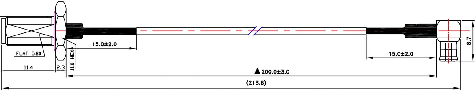 כבל קואקסיאלי שחור - IP67 SMA (F-B/H) ~ MCX (M-R/A) - 200MM