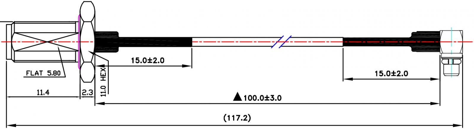 כבל קואקסיאלי שחור - IP67 SMA (F-B/H) ~ MMCX (M-R/A) - 100MM