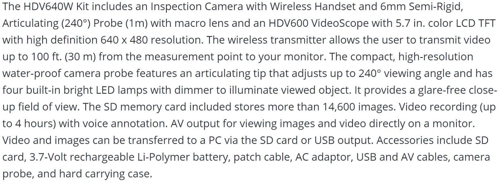 | 5376382 מצלמת בורוסקופ HD אלחוטית מקצועית - EXTECH HDV640W | EXTECH INSTRUMENTS | מצלמת בורוסקופ HD אלחוטית מקצועית - EXTECH HDV640W ♦ מסך ''LCD (640X480) 5.7 אלחוטי♦ לכידת תמונות... ציוד בדיקה ומכשירי מדידה » ציוד בדיקה - שונות | כמות |