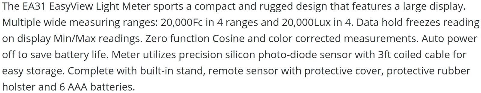 | 9076382 מודד עוצמת אור - EXTECH EA31 | EXTECH INSTRUMENTS | מודד עוצמת אור - EXTECH EA31 ♦ תצוגת LCD גדולה ומוארת♦ טווח מדידה : 20Lux ~ 20kLux♦ דיוק ... ציוד בדיקה ומכשירי מדידה » ציוד בדיקה - שונות | לא ניתן להזמין - אזל המלאי |