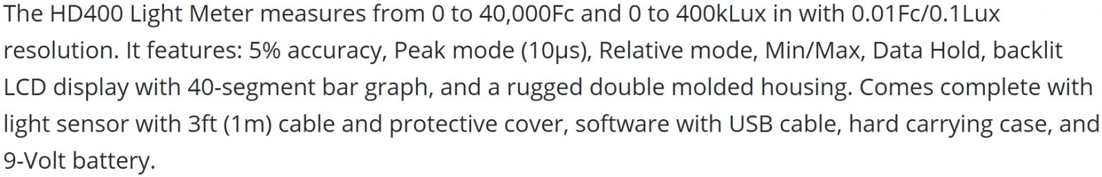 | 4176382 מודד עוצמת אור - EXTECH HD400 | EXTECH INSTRUMENTS | מודד עוצמת אור - EXTECH HD400 ♦ תצוגת LCD גדולה ומוארת♦ טווח מדידה : 400Lux ~ 400kLux♦ די... ציוד בדיקה ומכשירי מדידה » ציוד בדיקה - שונות | לא ניתן להזמין - אזל המלאי |