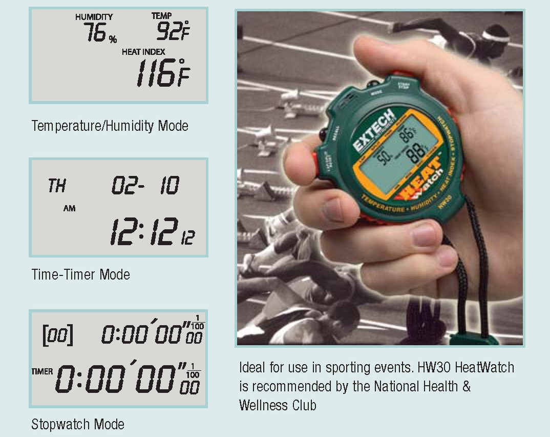 שעון עצר (סטופר) דיגיטלי עם מד טמפרטורה ולחות - EXTECH HW30