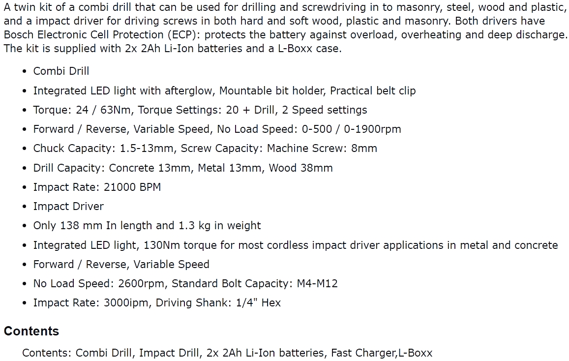 | 4137382 קיט מברגות מקצועית נטענות BOSCH 18VGSBGDR (2X2AH) - 18V | BOSCH | קיט מברגות מקצועית נטענות BOSCH 18VGSBGDR (2X2AH) - 18V מברגה / מקדחה דופקת - GSB18V-LI ♦ ש... כלי עבודה נטענים / חשמליים » מברגות / מקדחות / פטישונים | לא ניתן להזמין - אזל המלאי |