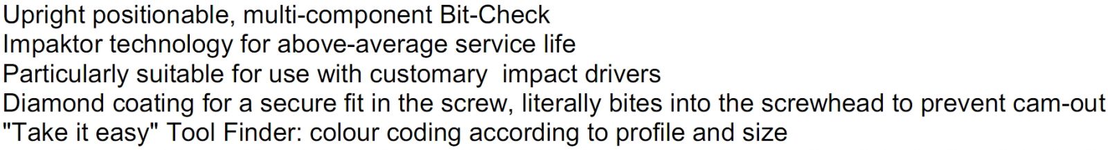 | 3922382 סט ביטים מקצועי - 6 יחידות - WERA BIT CHECK 6 IMPAKTOR 1 | WERA | סט ביטים מקצועי - 6 יחידות - WERA BIT CHECK 6 IMPAKTOR 1 ♦ טכנולוגית IMPAKTOR לאריכות חיי הביטים♦... כלי עבודה נטענים / חשמליים » מקדחים / ביטים / כרסמים | כמות |