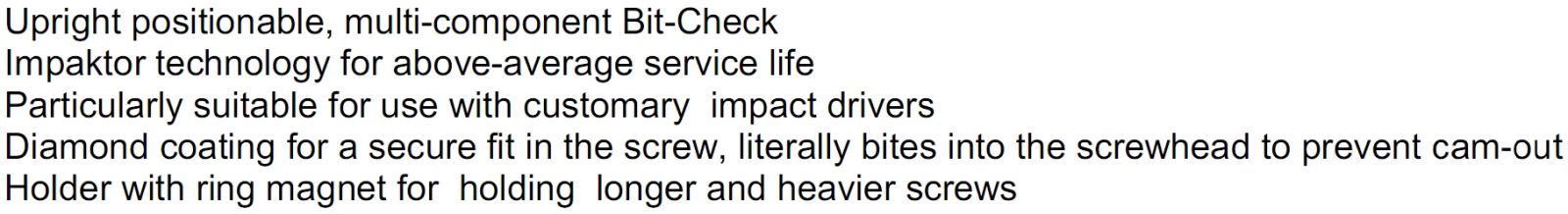 | 4032382 סט ביטים מקצועי - 10 יחידות - WERA BIT CHECK 10 TX IMPAKTOR 1 | WERA | סט ביטים מקצועי - 10 יחידות - WERA BIT CHECK 10 TX IMPAKTOR 1 ♦ טכנולוגית IMPAKTOR לאריכות חיי הביטים&d... כלי עבודה נטענים / חשמליים » מקדחים / ביטים / כרסמים | כמות |