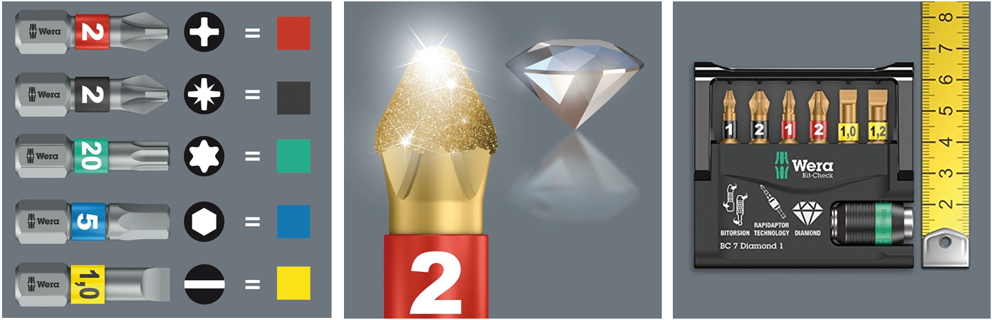 סט ביטים מקצועי - 7 יחידות - WERA BIT CHECK 7 DIAMOND 1 WERA ועוד כלי עבודה נטענים / חשמליים. לחצו למיפרט טכני מלא. צרו קשר לייעוץ מקצועי: 04-8520233