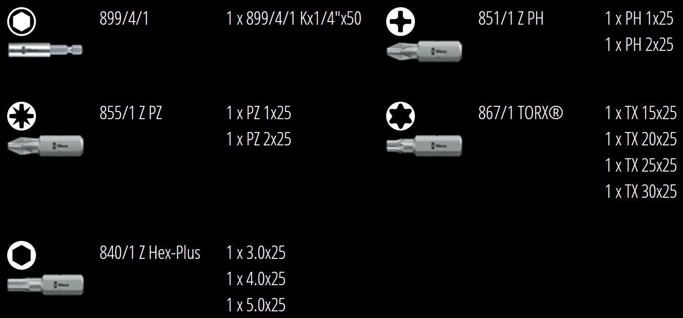 סט ביטים מקצועי - 12 יחידות - WERA BIT CHECK 12 METAL 1