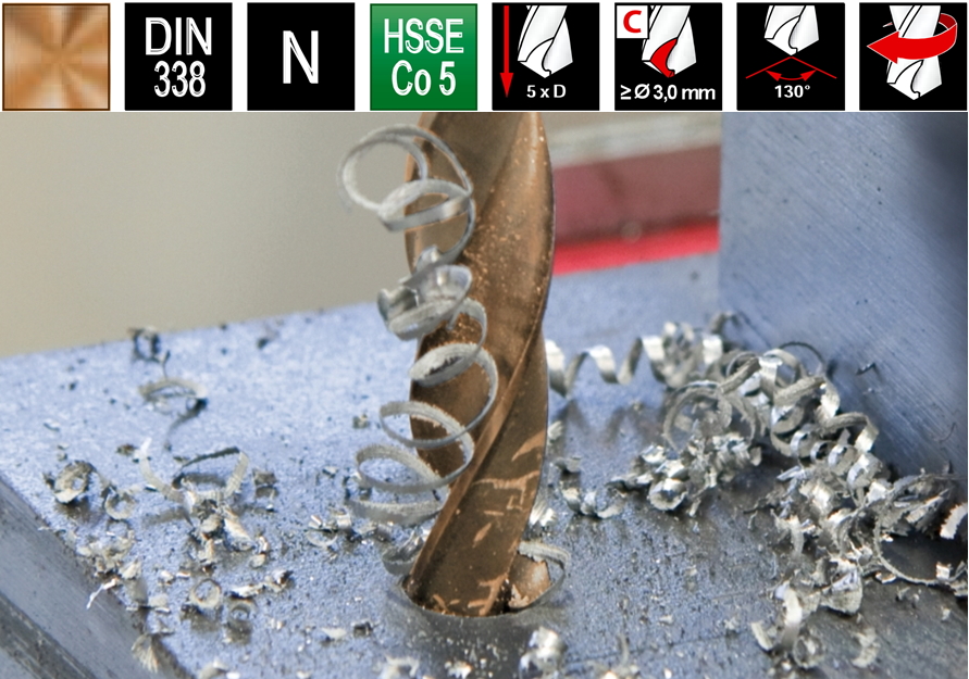 ♦ סוג מקדחים : HSSE CO5 DIN 338 TYPE N