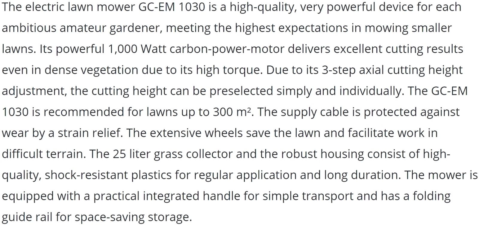 | 29181IS מכסחת דשא חשמלית מקצועית - EINHELL GC-EM 1030 | EINHELL | מכסחת דשא חשמלית מקצועית - EINHELL GC-EM 1030 ♦ מנוע עוצמתי בהספק של 1000 וואט♦ מע... כלי עבודה נטענים / חשמליים » כלי גינון חשמליים / נטענים | לא ניתן להזמין - אזל המלאי |