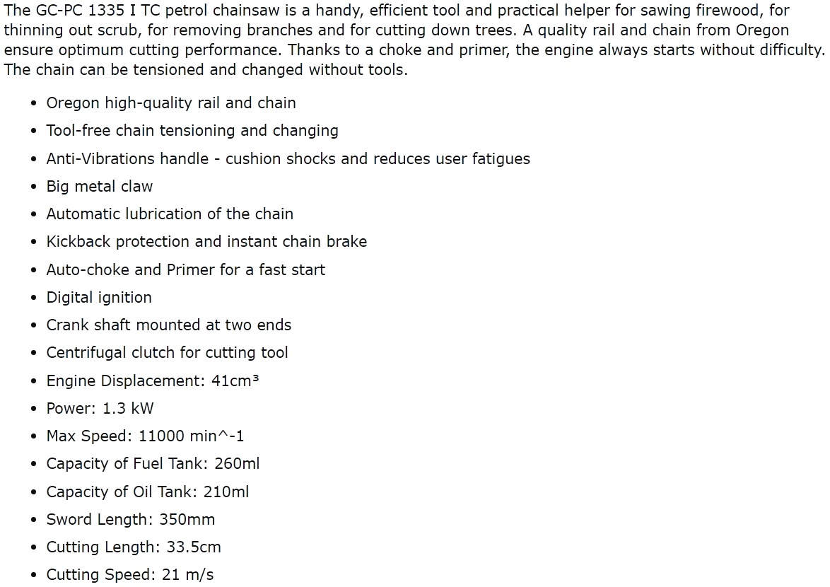 | 25681IS מסור שרשרת מקצועי EINHELL GC-PC 1335 I TC - 41CC | EINHELL | מסור שרשרת מקצועי EINHELL GC-PC 1335 I TC - 41CC ♦ נפח המנוע : 41 סמ"ק♦ אורך הלהב :... כלי עבודה נטענים / חשמליים » כלי גינון חשמליים / נטענים | לא ניתן להזמין - אזל המלאי |
