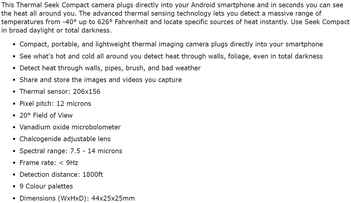 | 30970NI מצלמה תרמית - (SEEK THERMAL COMPACT XR IOS (LIGHTNING | SEEK THERMAL | מצלמה תרמית - (SEEK THERMAL COMPACT XR IOS (LIGHTNING ♦ רזולציית סנסור תרמי : 206X156♦ ט... ציוד בדיקה ומכשירי מדידה » מצלמות תרמיות | לא ניתן להזמין - אזל המלאי |