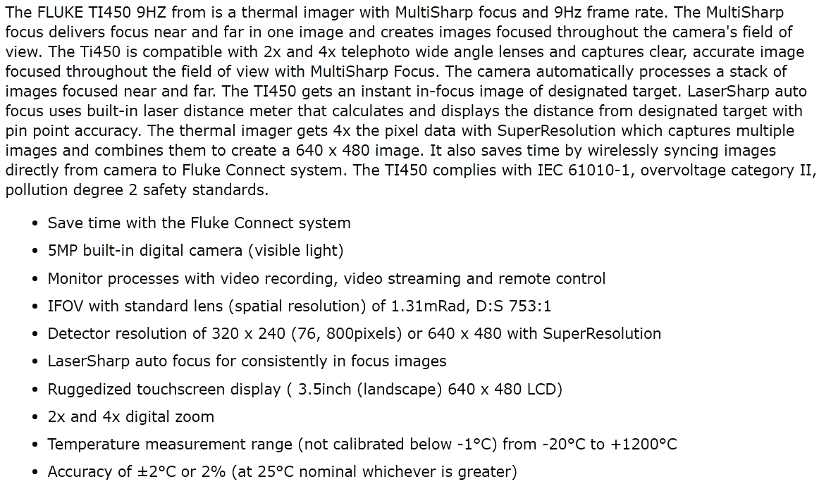 | 0836352 מצלמה תרמית מקצועית פלוק - FLUKE TI450 9HZ | FLUKE | מצלמה תרמית מקצועית פלוק - FLUKE TI450 9HZ ♦ טכנולוגיית צילום LAZER SHARP AUTO FOCUS♦ רז... ציוד בדיקה ומכשירי מדידה » מצלמות תרמיות | לא ניתן להזמין - אזל המלאי |