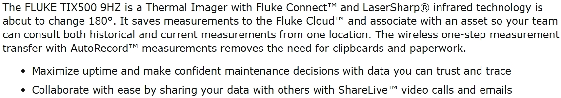 | 3079942 מצלמה תרמית מקצועית פלוק - FLUKE TIX500 9HZ | FLUKE | מצלמה תרמית מקצועית פלוק - FLUKE TIX500 9HZ ♦ טכנולוגיית צילום LAZER SHARP AUTO FOCUS♦ ר... ציוד בדיקה ומכשירי מדידה » מצלמות תרמיות | לא ניתן להזמין - אזל המלאי |