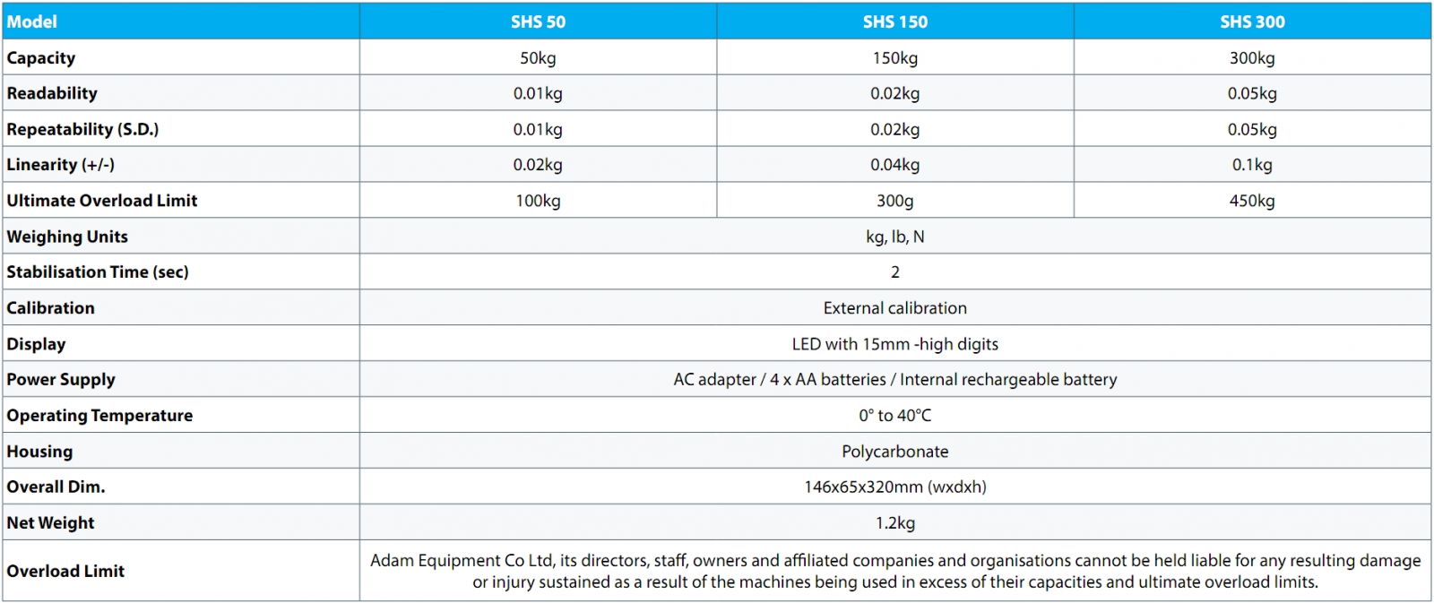 משקל תליה דיגיטלי - עד 300 ק''ג - רזולוציה 0.05 ק''ג - SHS 300 ADAM EQUIPMENT ועוד ציוד בדיקה ומכשירי מדידה. לחצו למיפרט טכני מלא. צרו קשר לייעוץ מקצועי: 04-8520233
