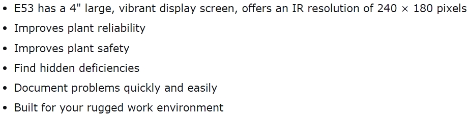 | 1133582 מצלמה תרמית מקצועית - FLIR E53 | FLIR SYSTEMS | מצלמה תרמית מקצועית - FLIR E53 ♦ טכנולוגית צילום FLIR MSX BLENDING♦ רזולוציית אינפרא אדום : (240X... ציוד בדיקה ומכשירי מדידה » מצלמות תרמיות | לא ניתן להזמין - אזל המלאי |