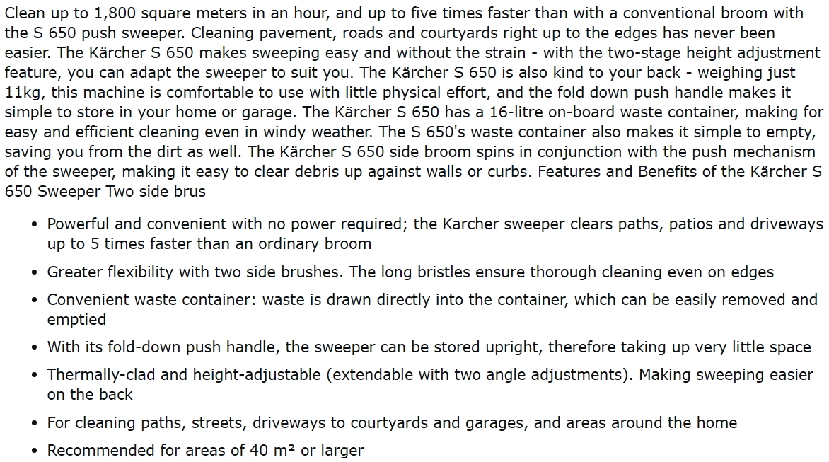 | 34281IS מטאטא מכני - KARCHER S 650 SWEEPER | KARCHER | מטאטא מכני - KARCHER S 650 SWEEPER ♦ שטח ניקוי : 1800 מ"ר / שעה♦ רוחב ניקוי רולר : ... כלי עבודה נטענים / חשמליים » שואבי אבק ומכונות טיאוט | לא ניתן להזמין - אזל המלאי |