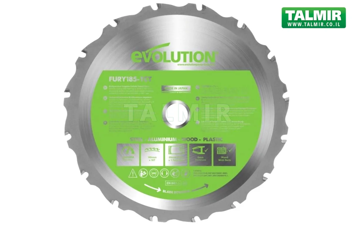 להב מסור - EVOLUTION FURY TCT 185MM EVOLUTION ועוד כלי עבודה נטענים / חשמליים. לחצו למיפרט טכני מלא. צרו קשר לייעוץ מקצועי: 04-8520233