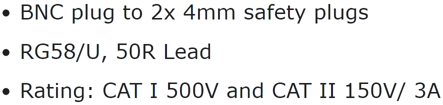 | 2871282 כבל בדיקה - 1.2M - BNC ISO ~ 2X 4MM PLUG | TENMA | כבל בדיקה - 1.2M - BNC ISO ~ 2X 4MM PLUG ... כבלים ואביזרים לכבלים » כבלים למעבדות אלקטרוניקה | כמות |