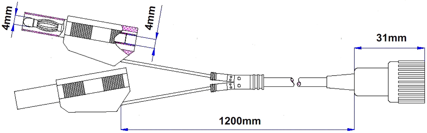 כבל בדיקה - 1.2M - BNC ISO ~ 2X 4MM SHROUDED PLUG