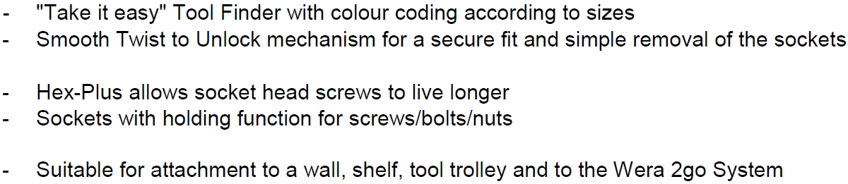 | 4795582 סט ביטים אלן למפתח ''3/8 - WERA ZYKLOP BELT B 2 | WERA | סט ביטים אלן למפתח ''3/8 - WERA ZYKLOP BELT B 2 ♦ פלדת כרום ונדיום חזקה ואיכותית♦ סימון צבעוני וב... כלי עבודה נטענים / חשמליים » מקדחים / ביטים / כרסמים | כמות |