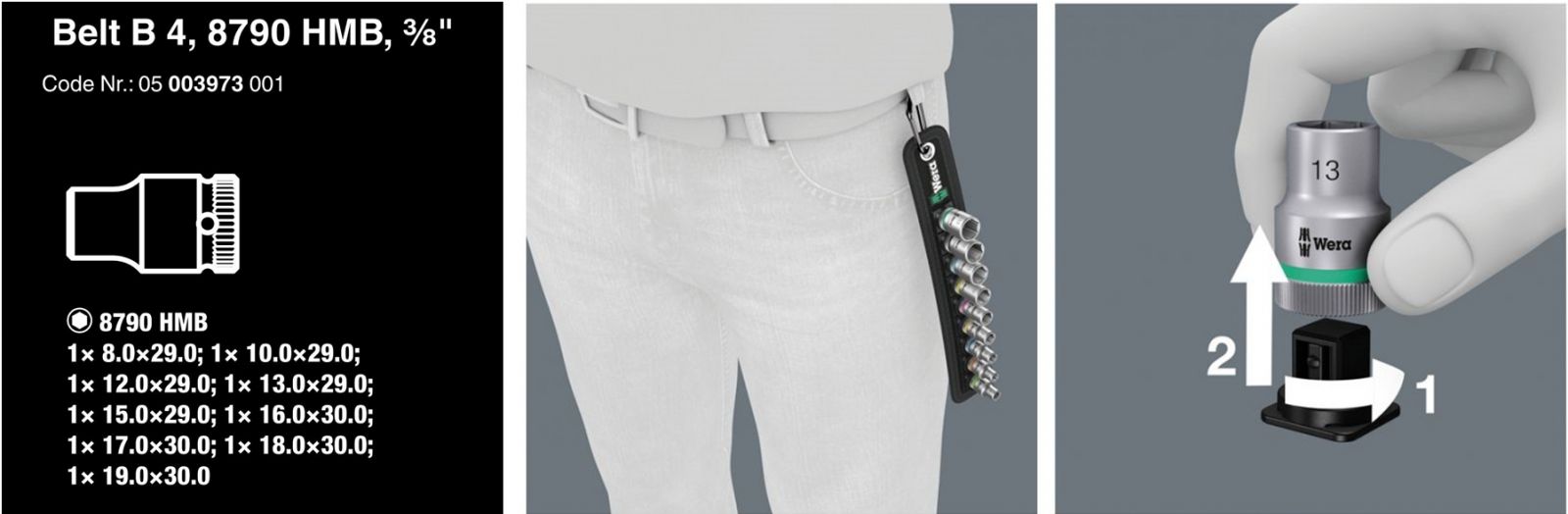 סט ביטים בוקסה למפתח ''3/8 - WERA ZYKLOP BELT B 4 WERA ועוד כלי עבודה נטענים / חשמליים. לחצו למיפרט טכני מלא. צרו קשר לייעוץ מקצועי: 04-8520233