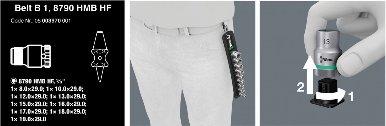 סט ביטים בוקסה למפתח ''3/8 - WERA ZYKLOP BELT B 1 WERA ועוד כלי עבודה נטענים / חשמליים. לחצו למיפרט טכני מלא. צרו קשר לייעוץ מקצועי: 04-8520233