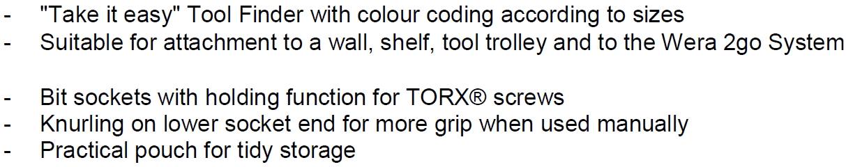 | 0895582 סט ביטים ארוכים כוכב למפתח ''3/8 - WERA ZYKLOP 8767 B HF 1 | WERA | סט ביטים ארוכים כוכב למפתח ''3/8 - WERA ZYKLOP 8767 B HF 1 ♦ פלדת כרום ונדיום חזקה ואיכותית♦ סימו... כלי עבודה נטענים / חשמליים » מקדחים / ביטים / כרסמים | כמות |