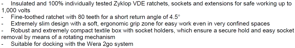 | 5695582 סט מפתח רצ'ט מקצועי מבודד ''3/8 - 17 יחידות - WERA 8100 SB VDE 1 | WERA | סט מפתח רצ'ט מקצועי מבודד ''3/8 - 17 יחידות - WERA 8100 SB VDE 1 ♦ גוף מפלדה חזקה ואיכותית - DROP FROGED... כלי עבודה ידניים » מפתחות ובוקסות | כמות |